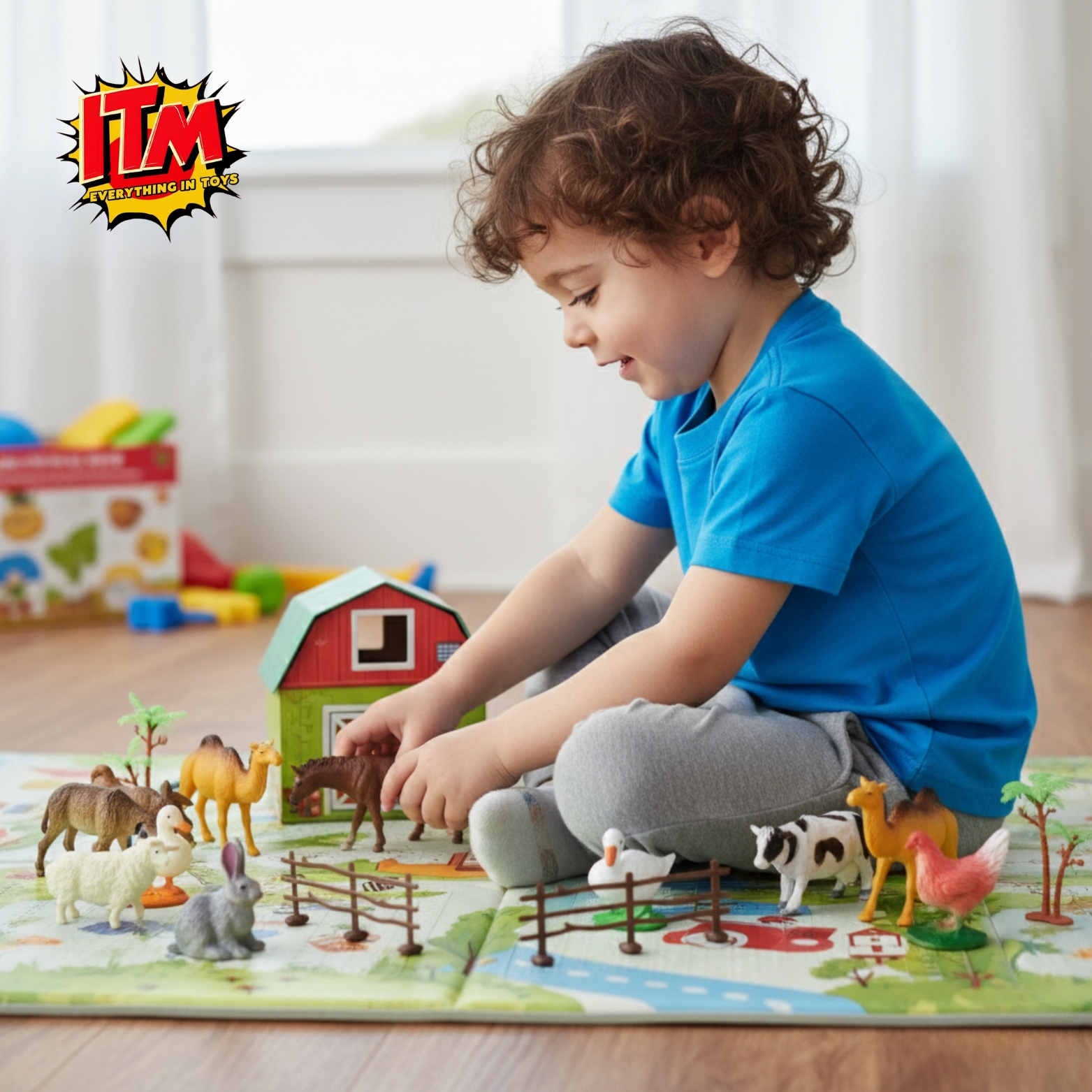 Bring the excitement of the farm right into your home with the India Toys Mart 12-Piece Deluxe Farm Animal Play Set! This comprehensive collection is perfect for sparking creativity, encouraging imaginative play, and teaching children all about farm life.