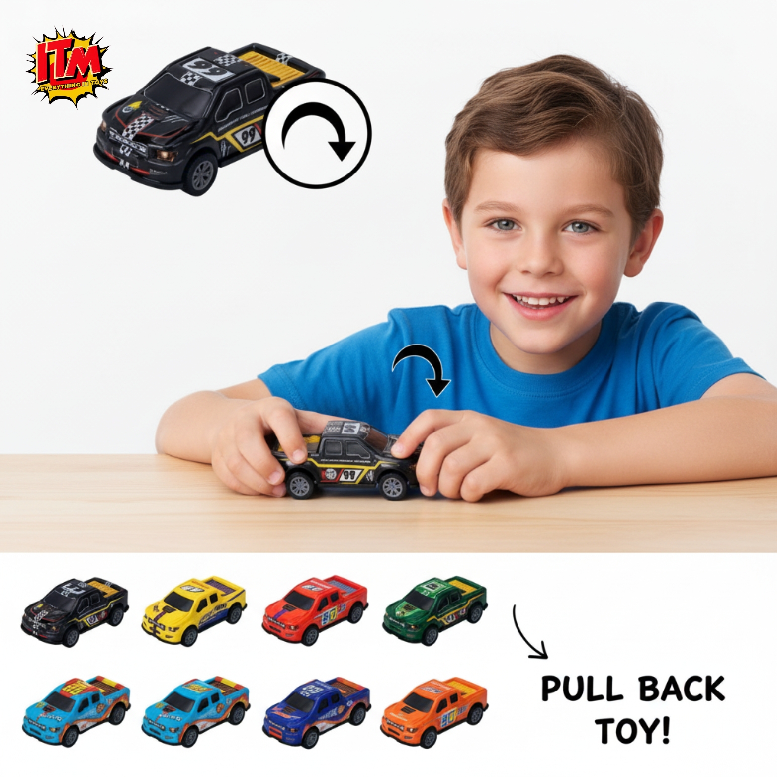 The set includes a variety of race cars, from sleek sports cars to rugged off-road vehicles, ensuring a new adventure with every race. The die-cast metal body provides a premium feel and long-lasting quality, while the pull-back mechanism makes them easy for little hands to operate. Just pull them back and watch them zoom!