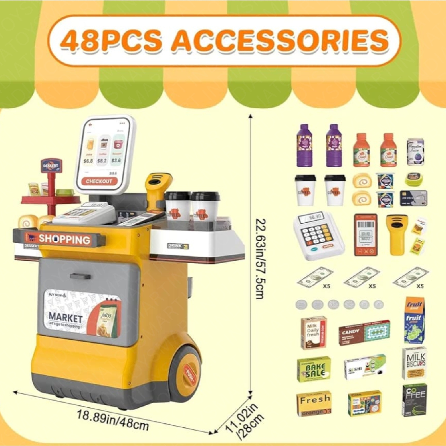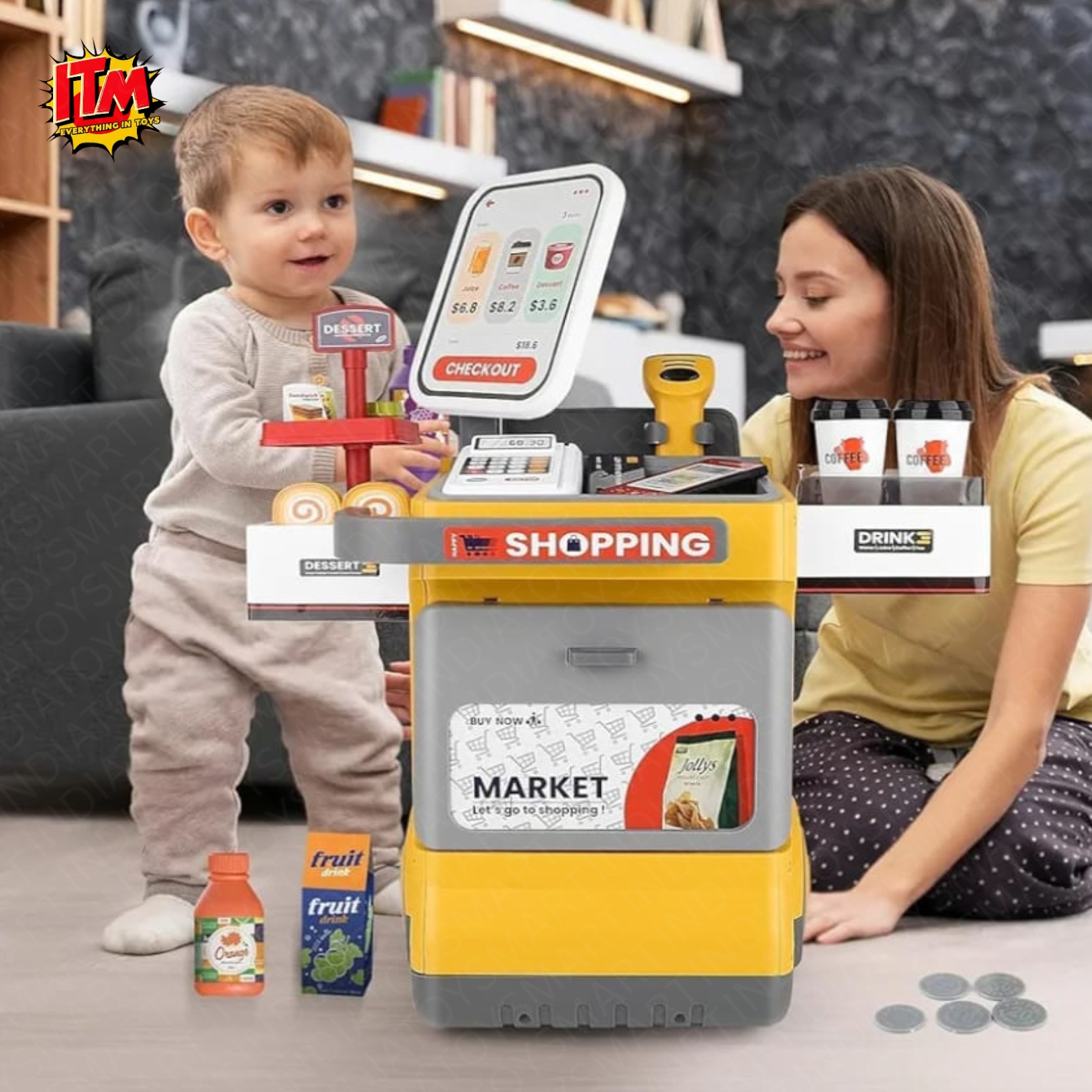 Bring the fun of grocery shopping home with this interactive India Toys Mart Super market Playset! This dynamic toy cart is packed with features to spark your child’s imagination. They can enjoy a realistic shopping experience with built-in lights and sound effects, making playtime feel extra real.