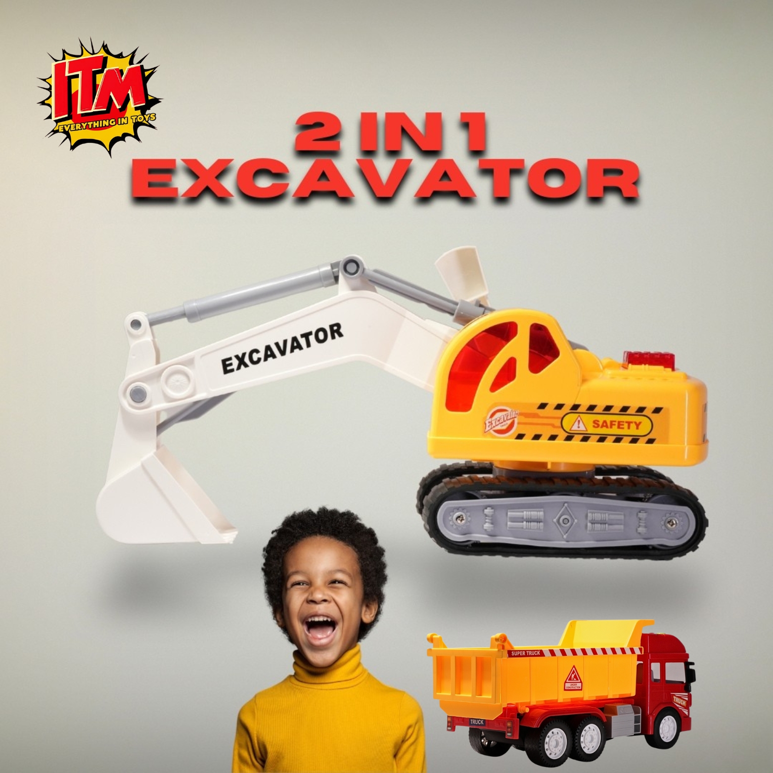 Introducing the 2-in-1 Excavator & Dumper Truck from India Toys Mart, the ultimate toy for your little builder! This incredible playset combines two of the most iconic construction vehicles into one amazing toy, providing endless hours of creative play.