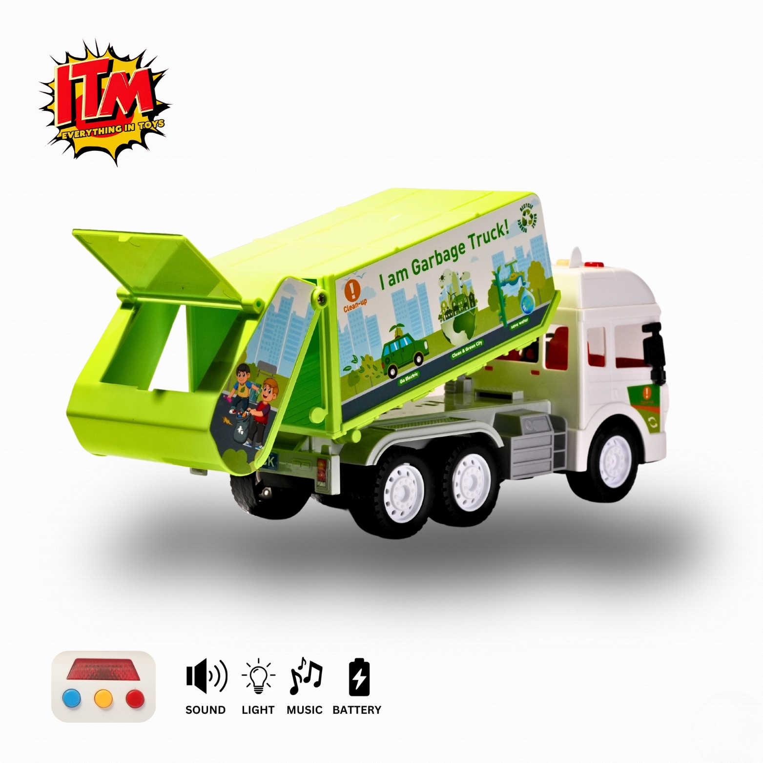 India Toys Mart – Garbage Truck Toy with Lights & Music (Model: LMI-8030-65A)